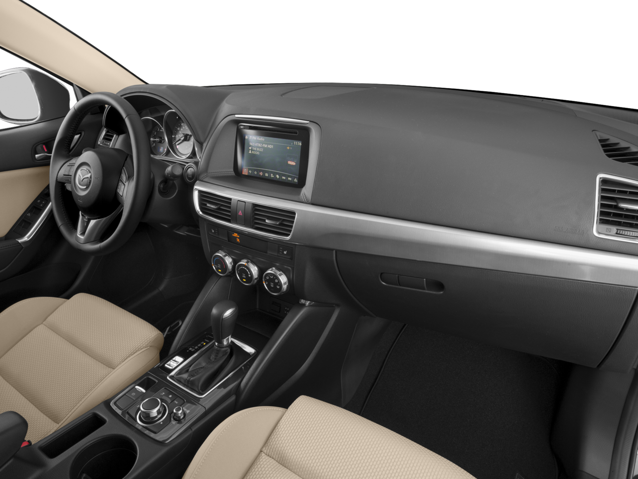 Recent Arrival! With some available options like 17 x 7J Aluminum Alloy Wheels, 4-Wheel Disc Brakes, 4.624 Axle Ratio, 6 Speakers, ABS brakes, Air Conditioning, Alloy wheels, AM/FM radio, Brake assist, Bumpers: body-color, CD player, Cloth Seat Trim, Delay-off headlights, Driver door bin, Driver vanity mirror, Dual front impact airbags, Dual front side impact airbags, Electronic Stability Control, Emergency communication system: Mazda Connect, Exterior Parking Camera Rear, Four wheel independent suspension, Front anti-roll bar, Front Bucket Seats, Front Center Armrest, Front fog lights, Front reading lights, Heated front seats, Illuminated entry, Leather Shift Knob, Low tire pressure warning, Navigation System, Occupant sensing airbag, Outside temperature display, Overhead airbag, Overhead console, Panic alarm, Passenger door bin, Passenger vanity mirror, Power door mirrors, Power driver seat, Power steering, Power windows, Radio data system, Radio: AM/FM/CD/HD Modular Audio System w/6 Spkrs, Rear anti-roll bar, Rear reading lights, Rear seat center armrest, Rear window defroster, Rear window wiper, Remote keyless entry, Speed control, Speed-sensing steering, Split folding rear seat, Spoiler, Steering wheel mounted audio controls, Tachometer, Telescoping steering wheel, Tilt steering wheel, Traction control, Trip computer, Turn signal indicator mirrors, and Variably intermittent wipers. 2016 4D Sport Utility FWD Mazda CX-5 Meteor Gray Mica Touring 6-Speed Automatic