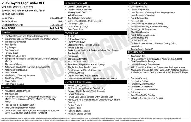 We invite you to visit our showroom and take this Highlander XLE for a test drive. Our knowledgeable sales team is here to answer any questions you may have and help you discover why this SUV is the perfect fit for your needs. Don't miss your chance to own this exceptional 2019 Toyota Highlander XLE.