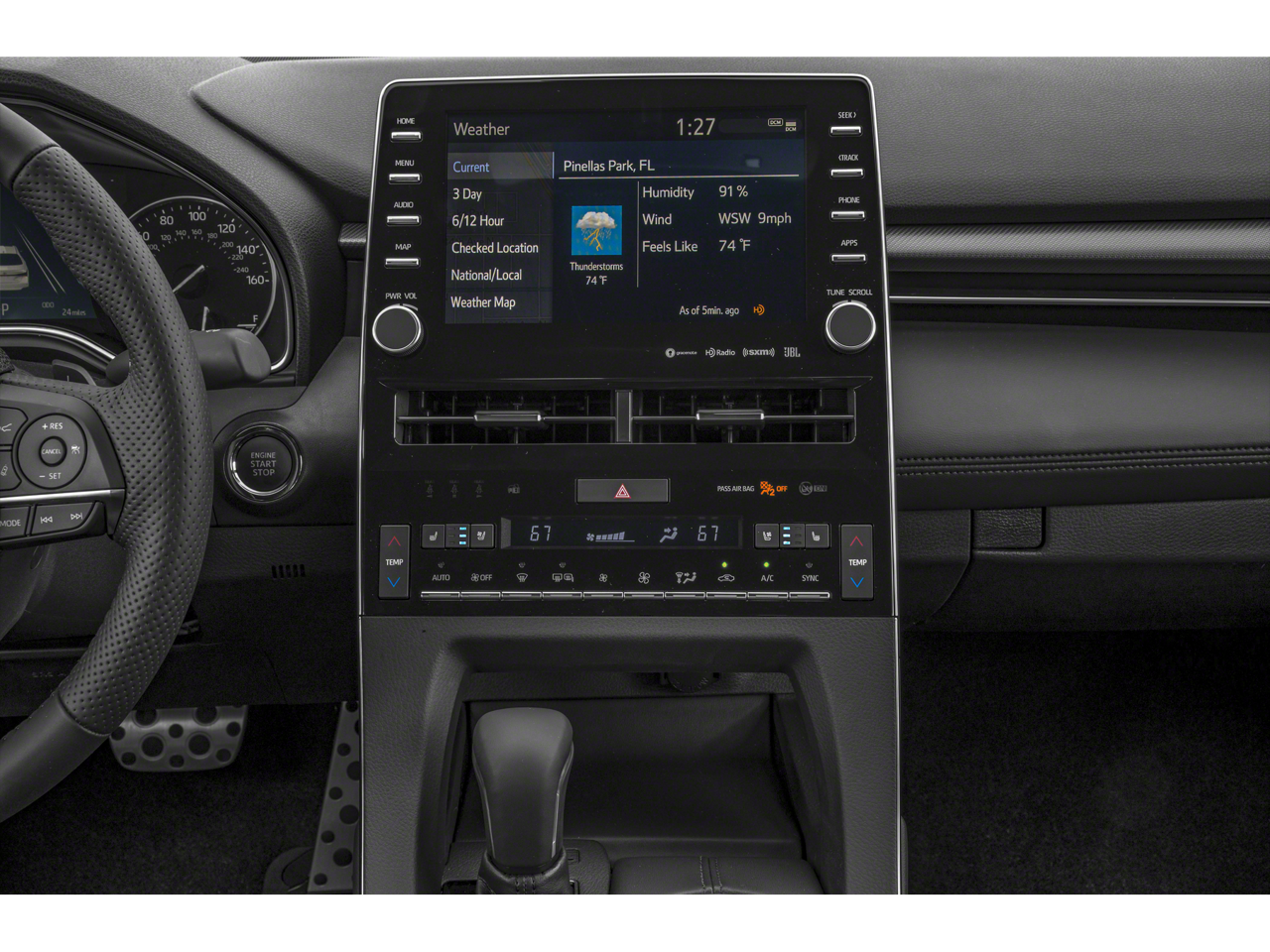 - Radio: Premium Audio w/JBL & Clari-Fi -inc: 14 speakers, subwoofer, 1200-watt amplifier, 9" touch screen, Amazon Alexa in-car app, Apple CarPlay, auxiliary audio jack, a USB 2.0 port w/iPod connectivity and control, dynamic navigation w/dynamic POI search and 3-year trial, dynamic voice recognition w/3-year trial, Bluetooth® hands-free phone capability and music streaming, Entune app suite, Siri Eyes Free, HD Radio, SiriusXM Satellite Radio w/3-month all-access trial, Entune 3.0 Toyota Connected Services, Safety Connect w/3-year trial, Service Connect w/3-year trial, Remote Connect w/6-month trial, Wi-Fi Connect up to 2GB w/6-month trial, Destination Assist Connect w/6-month trial