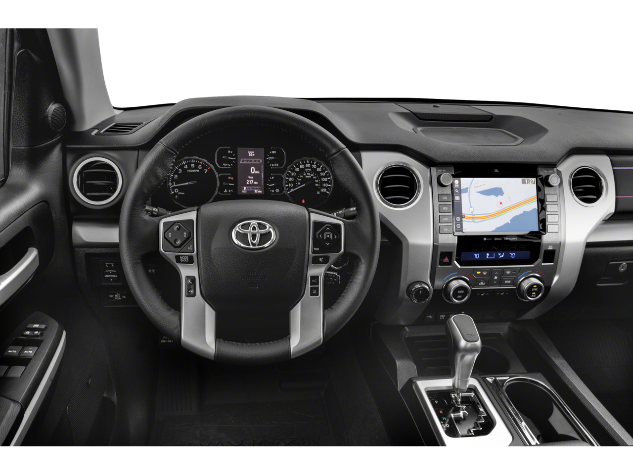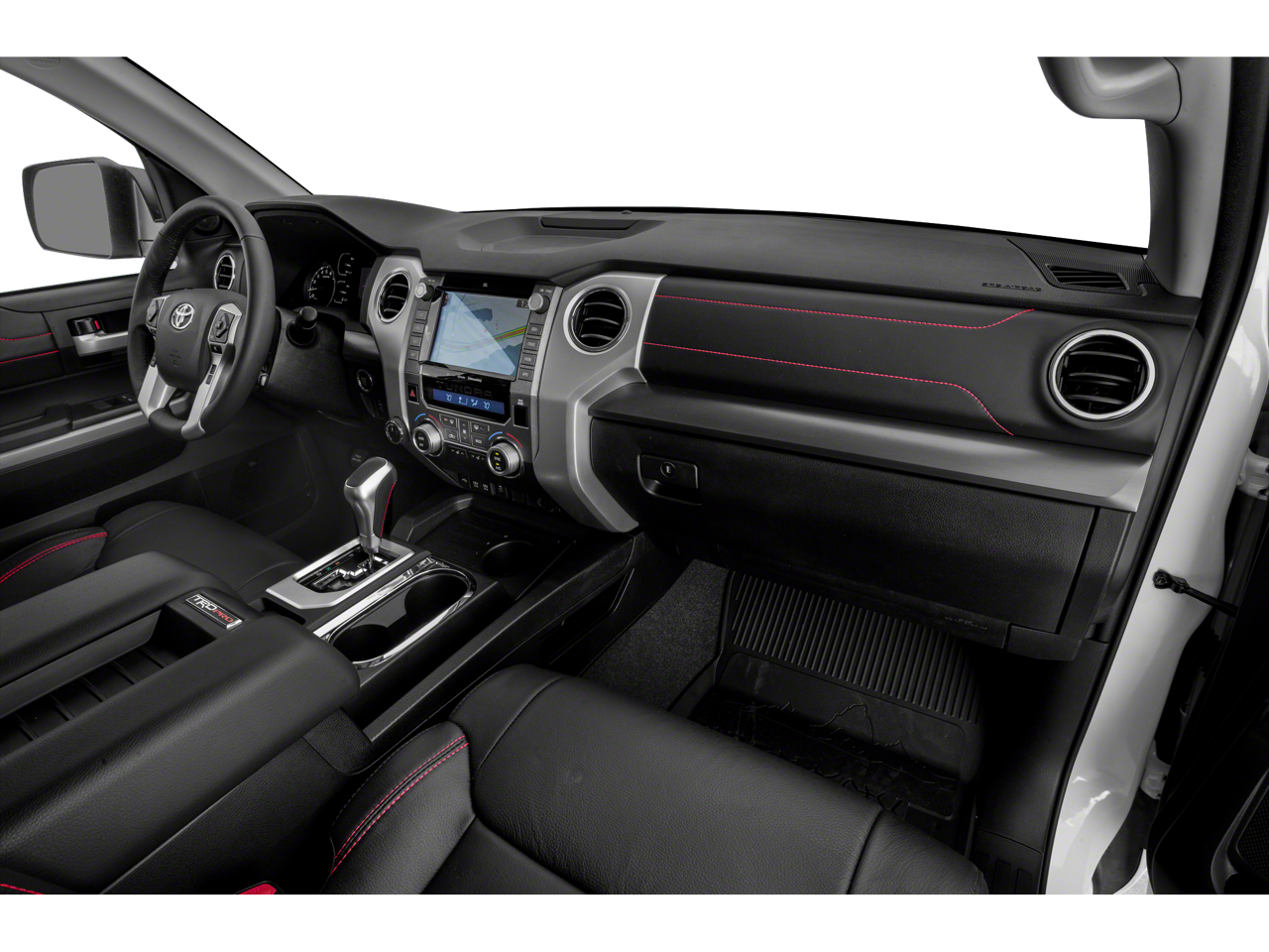 Recent Arrival! 4WD, Black Leather. With some available options like 4WD, Black Leather, 12 Speakers, 38 Gallon Fuel Tank Capacity, 4-Wheel Disc Brakes, 4.30 Axle Ratio, ABS brakes, Air Conditioning, All Weather Floor Liner, Alloy wheels, AM/FM radio: SiriusXM, Anti-Theft Immobilizer w/Alarm, Apple CarPlay/Android Auto, Auto High-beam Headlights, Auto-Dimming Rear-View Mirror, Auto-dimming Rear-View mirror, Brake assist, Bumpers: body-color, Color-Keyed Power Heated Exterior Mirrors, Compass, Deck Rail System, Delay-off headlights, Driver door bin, Driver vanity mirror, Dual front impact airbags, Dual front side impact airbags, Electronic Stability Control, Emergency communication system: Safety Connect with 1-year trial, Exterior Parking Camera Rear, Front anti-roll bar, Front Bucket Seats, Front Bucket Seats w/TRD Pro Logos, Front Center Armrest, Front Door Smart Key System, Front fog lights, Front reading lights, Front wheel independent suspension, Fully automatic headlights, Garage door transmitter: HomeLink, Heated door mirrors, HomeLink Universal Transceiver, Illuminated entry, Knee airbag, Leather Seat Trim (LF), Leather Shift Knob, Low tire pressure warning, Navigation System, Occupant sensing airbag, Outside temperature display, Overhead airbag, Overhead console, Panic alarm, Passenger door bin, Passenger vanity mirror, Power door mirrors, Power driver seat, Power moonroof, Power passenger seat, Power steering, Power Tilt & Slide Moonroof w/Sliding Sunshade, Power windows, Power Windows w/Front Auto Up/Down, Push Button Starting System, Radio data system, Radio: Premium JBL Audio w/Dynamic Navigation, Rear reading lights, Rear seat center armrest, Rear step bumper, Rear window defroster, Remote Connect, Remote keyless entry, Rigid Industries LED Fog Lights, Safety Connect, Security system, Service Connect, SiriusXM Radio, Speed control, Speed-sensing steering, Split folding rear seat, Steering wheel mounted audio controls, Tachometer, Telescoping steering wheel, Tilt steering wheel, Traction control, TRD Pro Dual Exhaust, TRD Pro Suspension, Trip computer, Variably intermittent wipers, Voltmeter, and Wheels: 18 BBS 5-Spoke Satin Black Forged-Alum. 2020 4D CrewMax 4WD Toyota Tundra Midnight Black Metallic TRD Pro 6-Speed Automatic Electronic