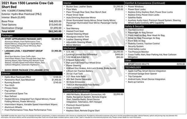 We invite you to experience the exceptional craftsmanship and features of this 2021 Ram 1500 Laramie. Visit our showroom today and let us demonstrate how this remarkable truck can exceed your expectations. We're confident you'll be impressed by its uncompromising performance, advanced technology, and premium amenities.
