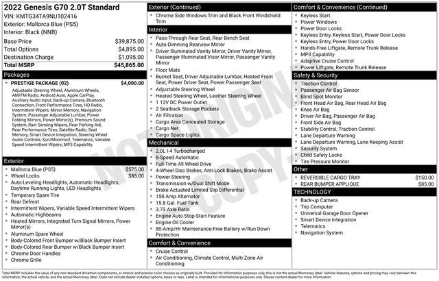 2022 Genesis G70 2.0T