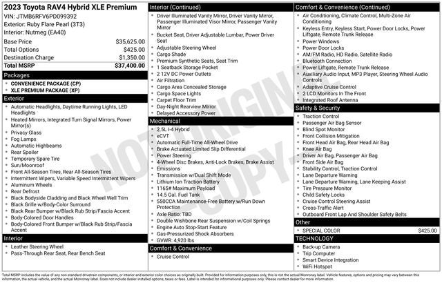 Boasting a striking Red exterior, the RAV4 Hybrid XLE Premium commands attention on the road. Under the hood, the powerful 2.5L 4-Cylinder engine, paired with the efficient eCVT and standard AWD, delivers an impressive 41 MPG in the city and 38 MPG on the highway, ensuring you'll spend less time at the pump and more time exploring.