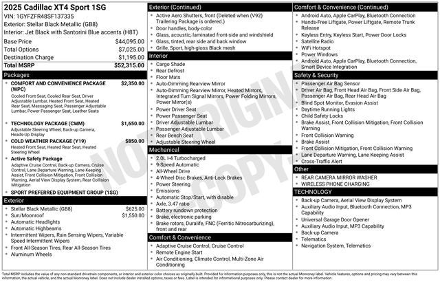 This 2025 Cadillac XT4 Sport is more than just a vehicle – it's a statement of refined taste and uncompromising standards. Experience the difference for yourself and schedule a test drive today. We're confident you'll be impressed by the exceptional craftsmanship and attention to detail that make this XT4 Sport a true standout in its class.