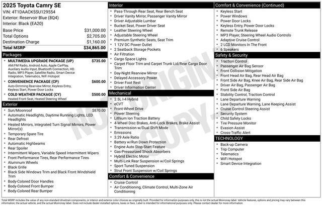 2025 Toyota CAMRY SE