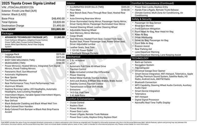 But the Crown Signia Limited is more than just a pretty face. Beneath the sleek exterior lies a powerful 2.5L I4 PDI DOHC 16V LEV3-SULEV30 engine, paired with a Continuously Variable (ECVT) transmission and an advanced AWD system. This powertrain delivers an exceptional blend of efficiency and performance, with an EPA-estimated 39 MPG in the city and 37 MPG on the highway.